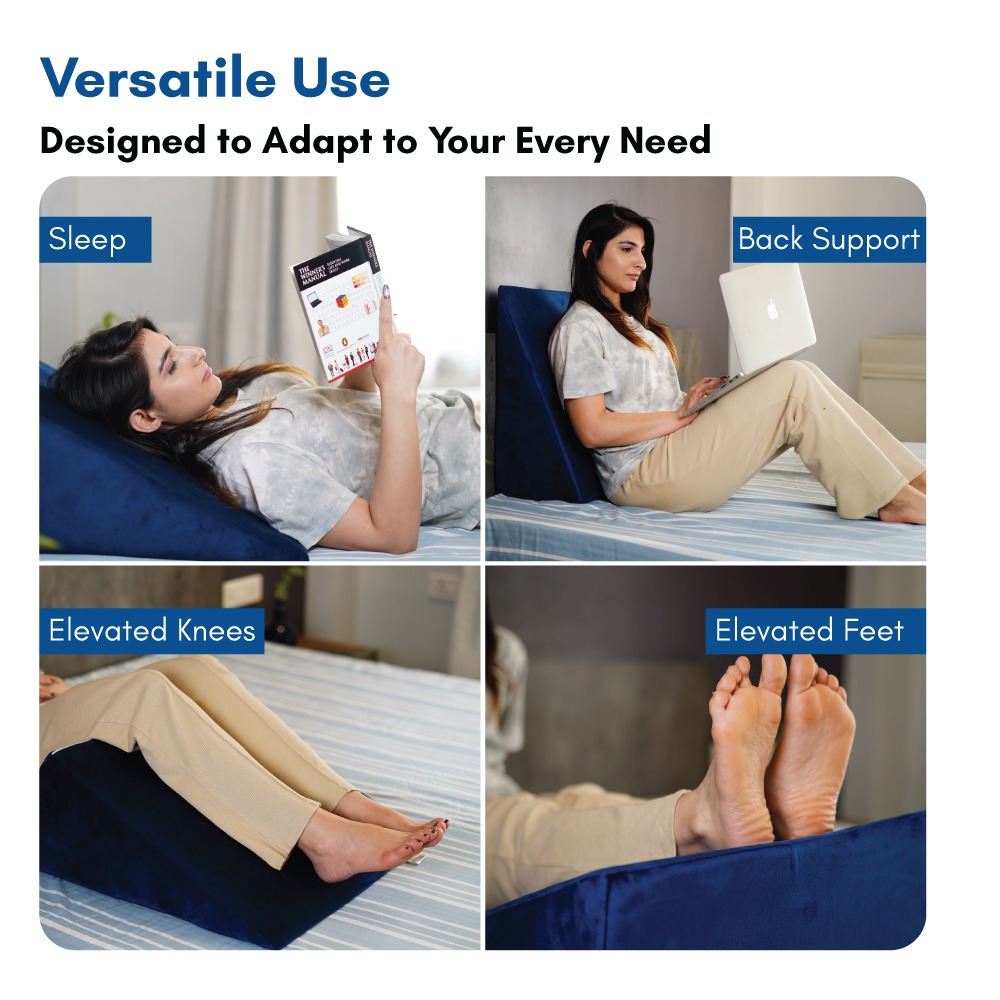 The Elevate Multifunctional Wedge Pillow is designed to provide superior support and elevation for your head, neck, and back. Whether you’re sleeping, reading, or working in bed, it alleviates pain and pressure while enhancing comfort. Ideal for those with acid reflux, snoring, or breathing issues, this multifunctional pillow promotes better posture and restful sleep. Crafted from premium materials, it maintains its shape for long-term durability experience multi-purpose comfort with this essential addition to your bedding for improved relaxation and well-being.